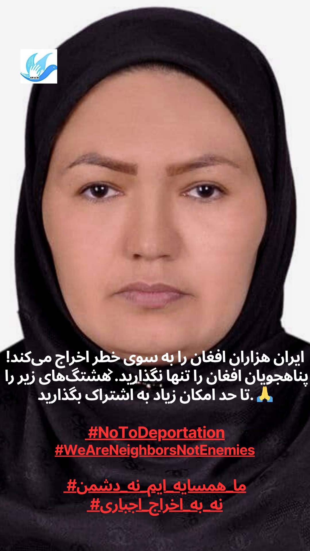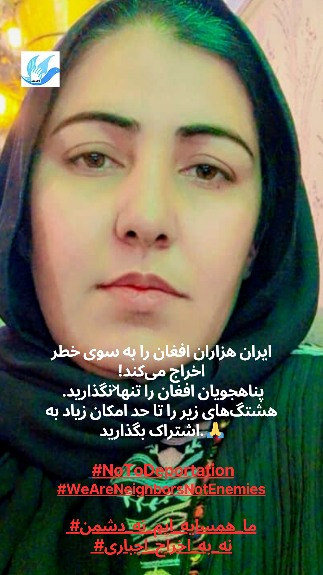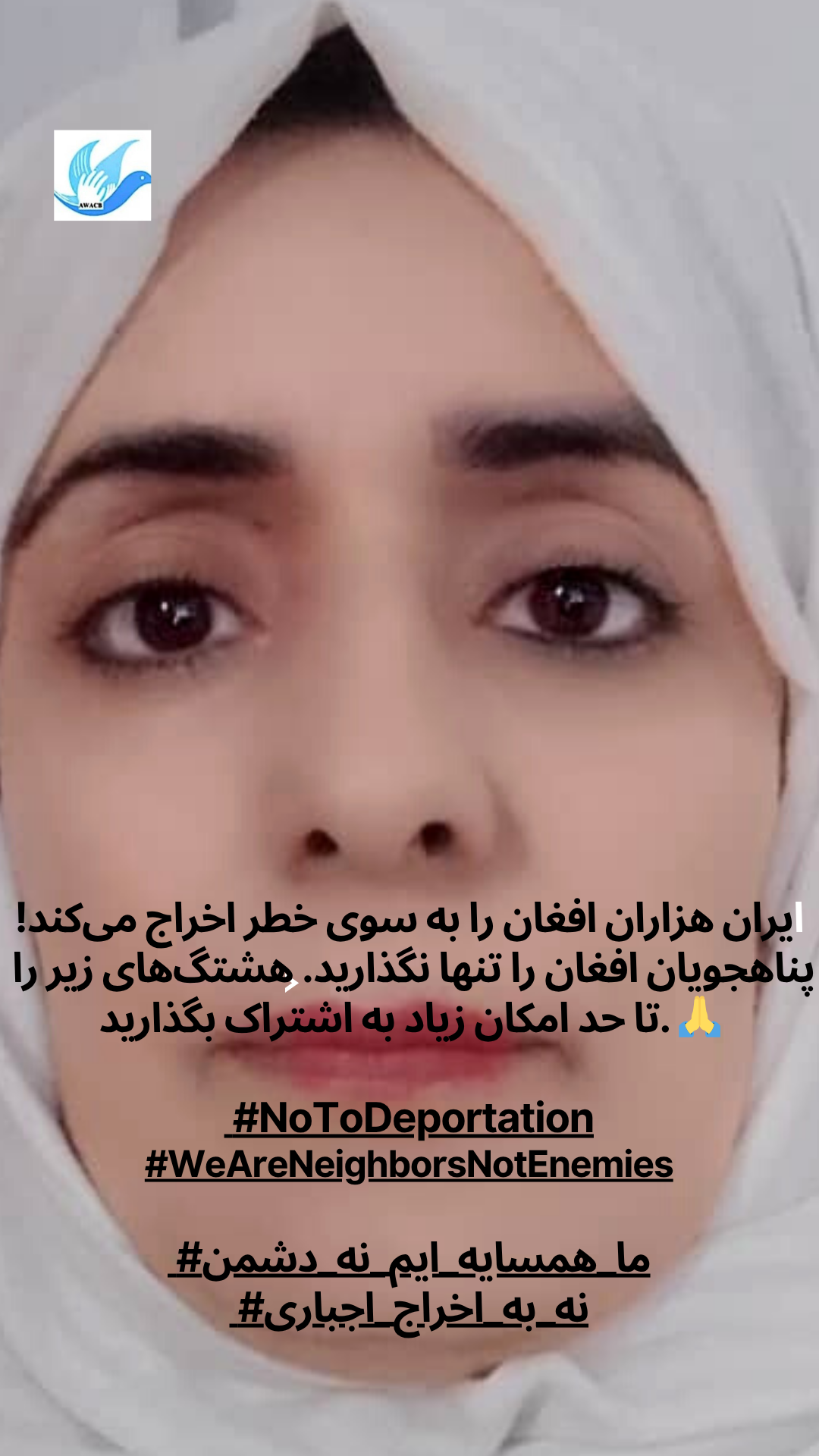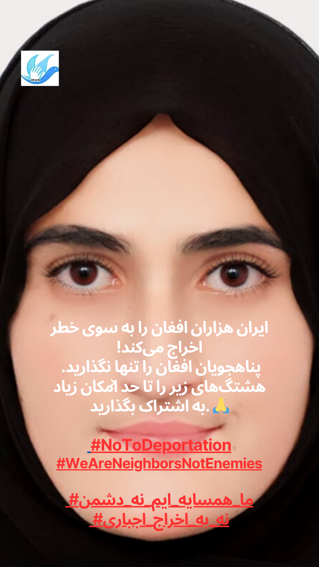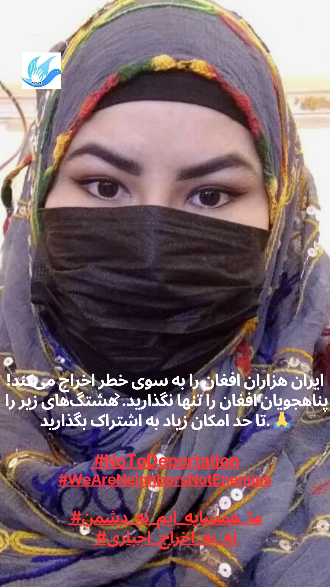 AWACB розпочала цю кампанію з фотографій афганських жінок, молоді та активісток, які стоять разом, піднімаючи свої голоси в одному потужному посланні до іранського уряду та народу: