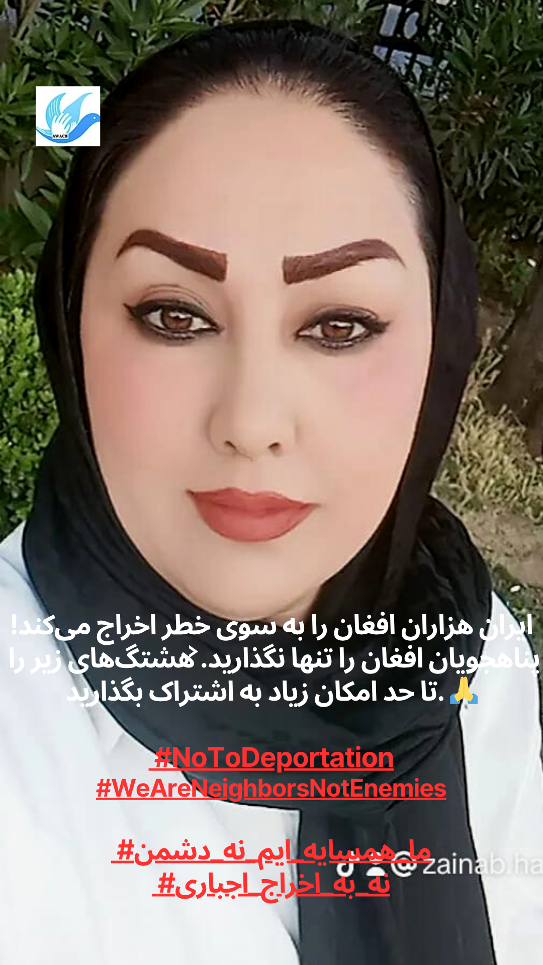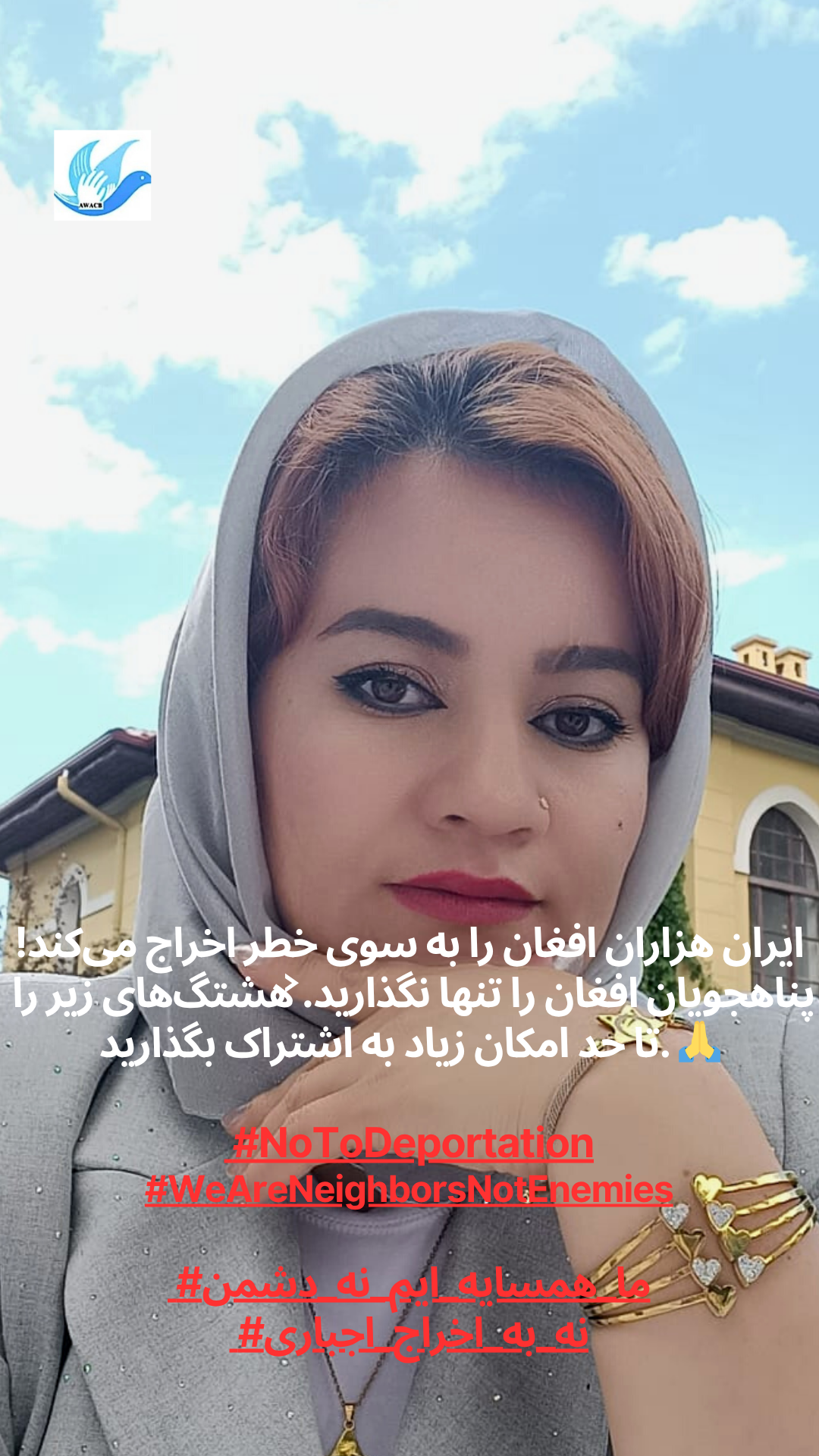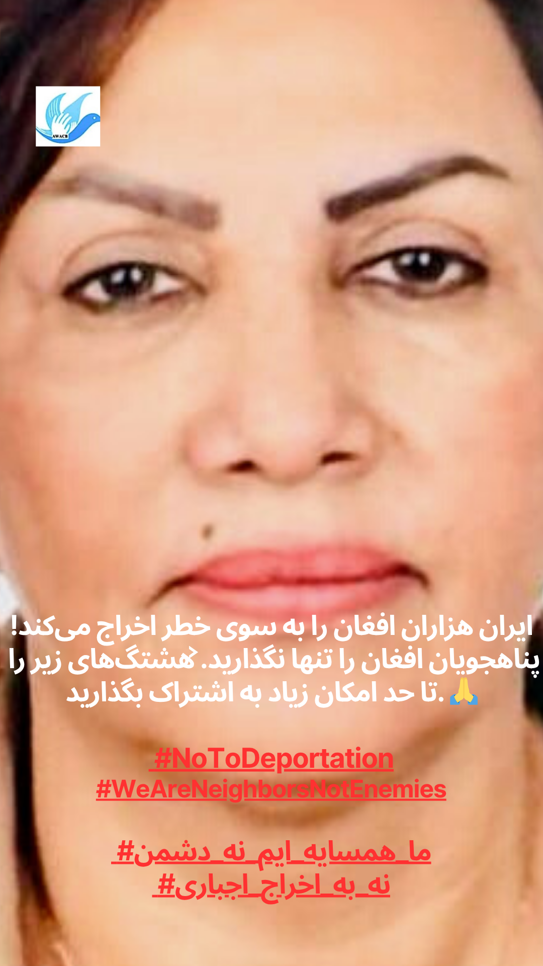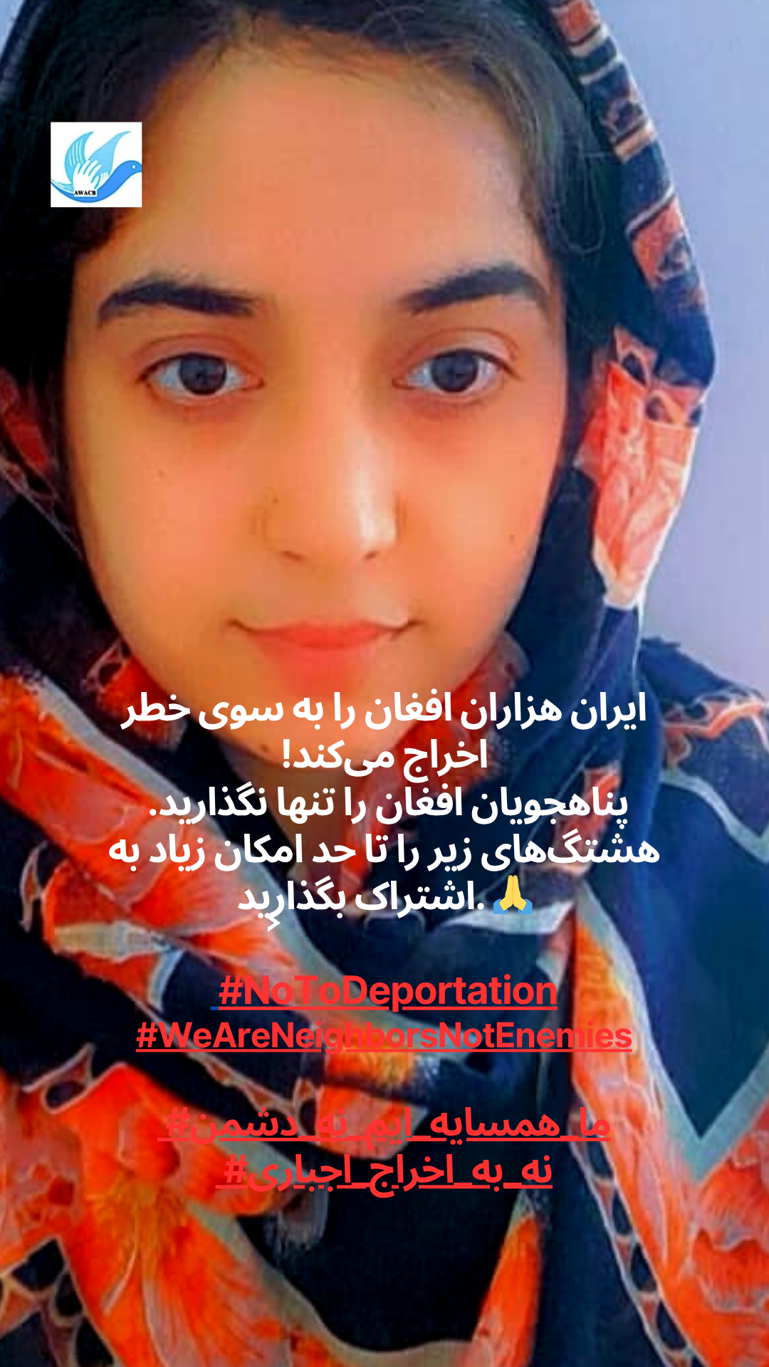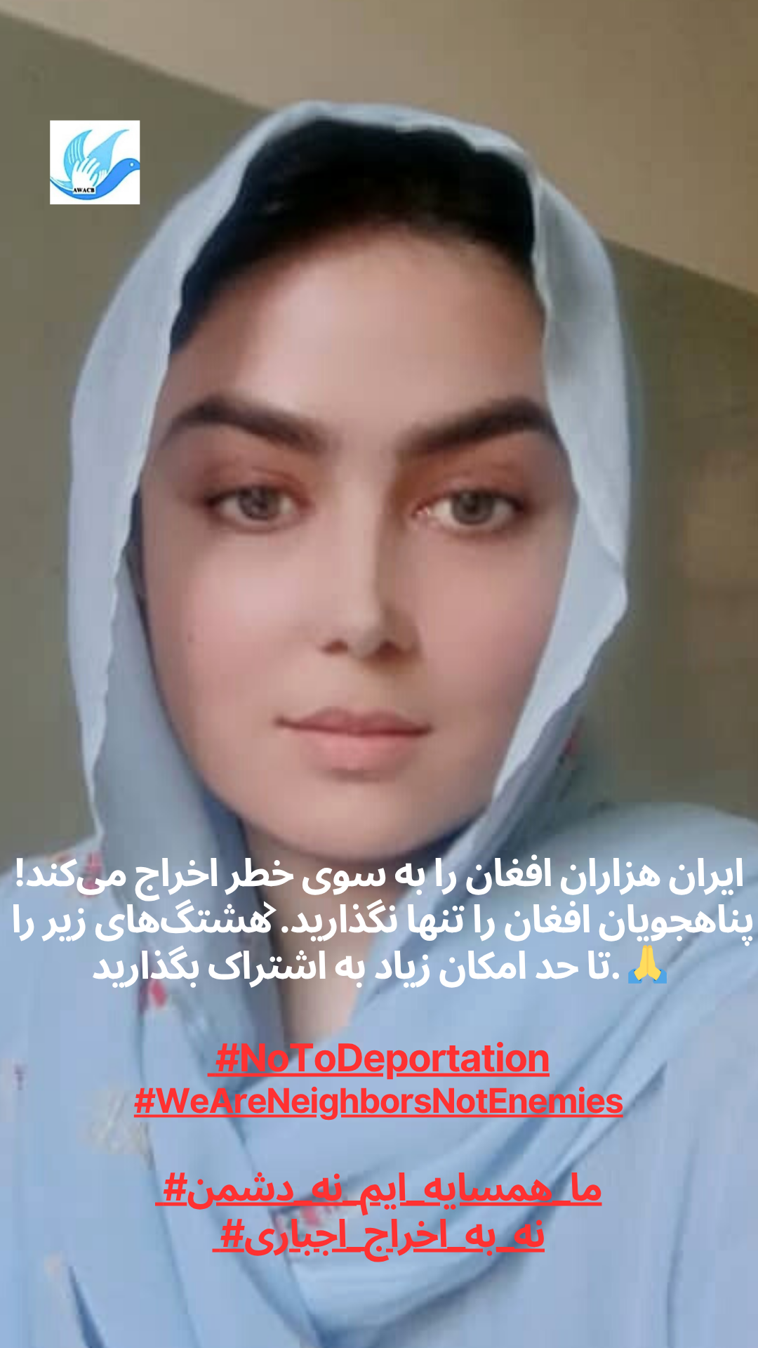 AWACB розпочала цю кампанію з фотографій афганських жінок, молоді та активісток, які стоять разом, піднімаючи свої голоси в одному потужному посланні до іранського уряду та народу: